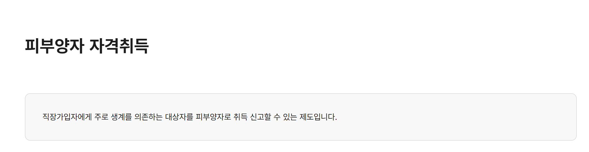 건강보험공단 홈페이지에서 "피부양자 취득 가능여부 확인" 서비스를 이용해보세요. 간단한 질문 몇 개로 자격 여부를 미리 확인할 수 있어요.