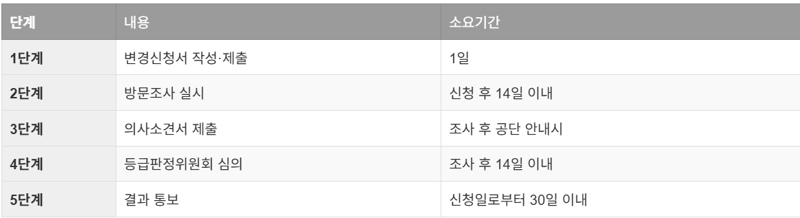 여기서 중요한 건... 언제든지 신청 가능하다는 점. 기존 등급 받은 지 얼마 안 됐어도 상관없어요. 변경 사유가 생기면 바로 신청하면 됨.