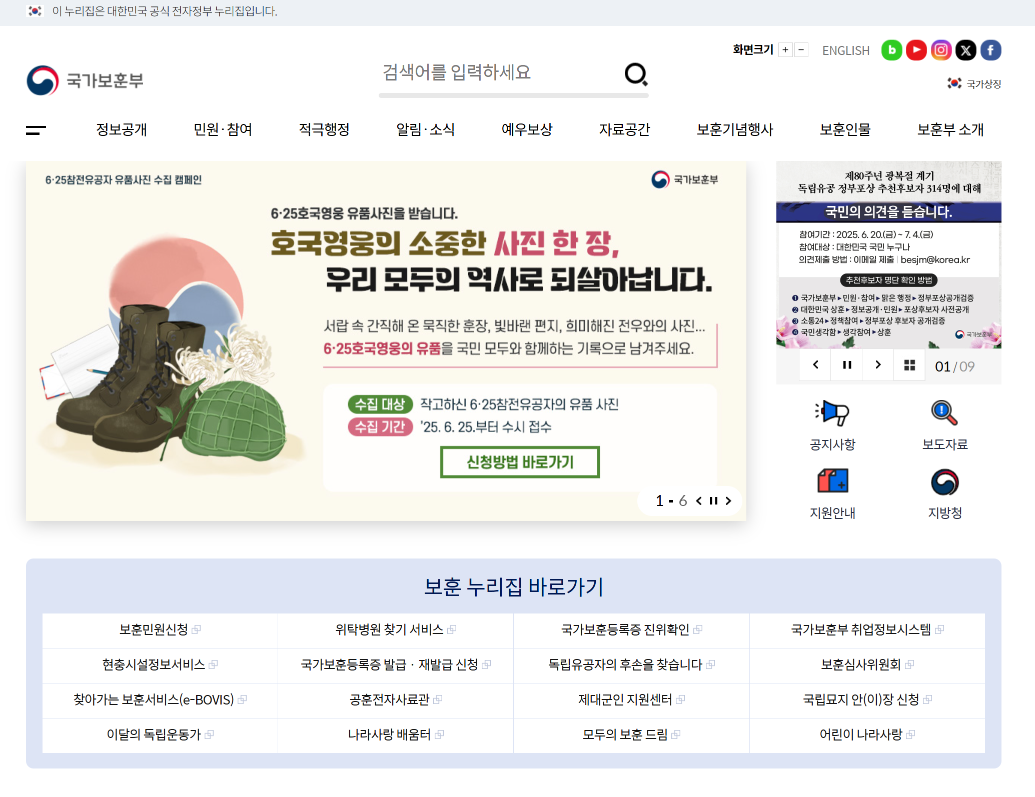 - 문의: 국가보훈부 상담센터 1577-0606